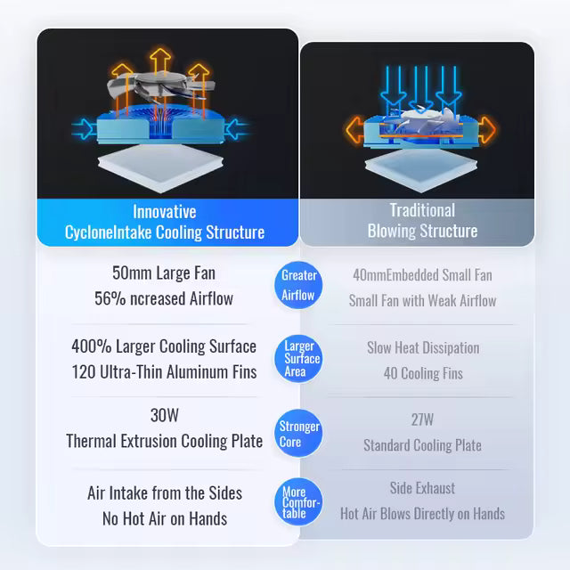 - 【Smooth Performance】The Gaming Phone Cooler unlocks your device’s full potential, ensuring no frame drops in games or lag during streams—enjoy ultra-clear, seamless visuals whether gaming, streaming, or watching videos in the car. Its top-and-bottom silent airflow design enables efficient heat dissipation, keeping hot air away from your hands.